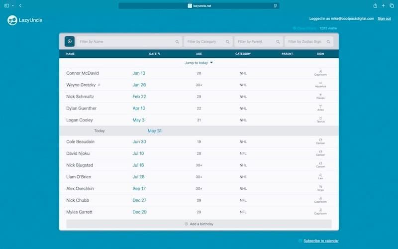 I have a lot of people in my family, and sometimes it's hard to keep track of their birthdays and how old they are. Lazy Uncle makes it a little easier. Give it a shot and let me know what you think.